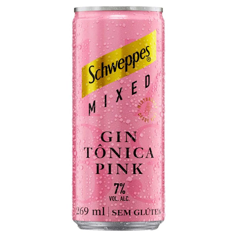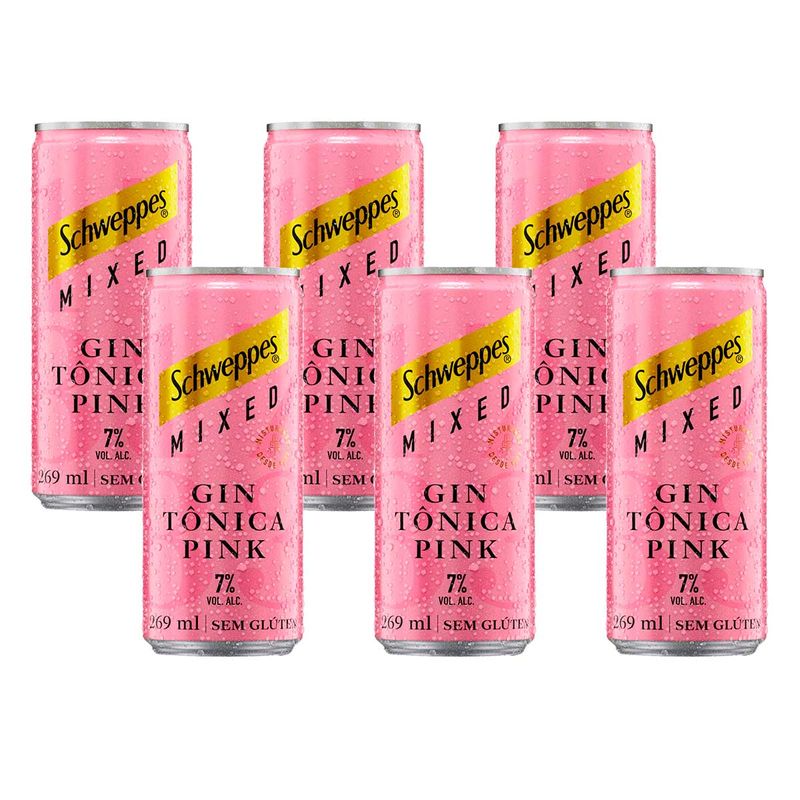 Bebida Alcoólica Mista Gaseificada Gin Tônica Pink Amora Schweppes Mixed Lata 269ml 6 Unidades