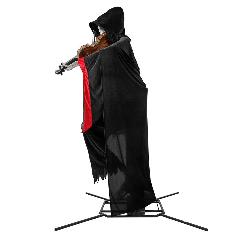 Dê um toque assustador e original à sua decoração de Halloween! A Caveira Violinista de 2,75 metros é a peça perfeita para criar um ambiente sombrio e impactante, ideal para festas e cenários temáticos. Apresente-se à figura mais imponente da sua decoração de Halloween: a Caveira Violinista de 2,75 metros. Com sua altura impressionante, ela domina o ambiente, criando uma atmosfera de mistério e terror. Vestida com trajes sombrios e segurando seu violino macabro, esta figura é a personificação da música da morte. Detalhes meticulosamente trabalhados, como os olhos iluminados por LEDs, risadas assustadoras e movimentos animados, tornam-na uma presença verdadeiramente arrepiante. Ideal para festas temáticas, casas assombradas ou vitrines que buscam um toque de horror clássico