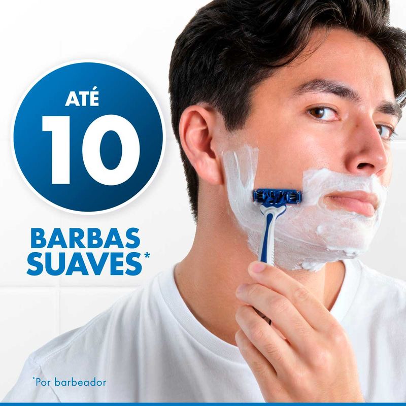 | Observação | Barbear rente extra suave: Até 10 barbas extra suaves por barbeador; Mais Lubrificação: a fita lubrificante melhorada com tecnologia Comfortgel é ativada por água para um barbear suave; Barbear rente: Três (3) lâminas móveis de longa duração que se ajustam às irregularidades do rosto para um barbear rente; Ajusta-se ao rosto: sua cabeça flexível se ajusta aos contornos do seu rosto; Maior controle: o cabo antiderrapante, agora 50% reciclado, proporciona um bom controle durante o barbear; Fácil de limpar: desenho aberto para um 100% melhor enxágue (vs. Prestobarba Ultragrip). |