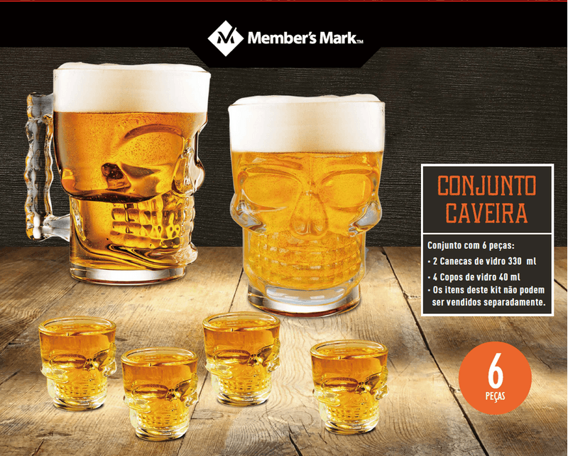 Conjunto de 2 Canecas e 4 copos Caveira Member's Mark 6 Unidades