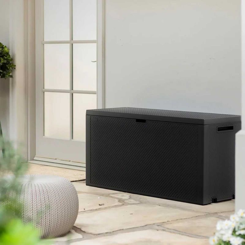 Baú Emily 270L, amplo, resistente e ideal para organizar ambientes internos ou externos.