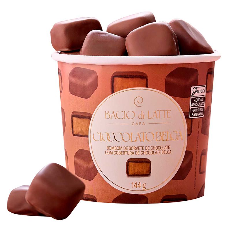 Bombom de Sorvete de Chocolate Com Cobertura de Chocolate Belga - Bacio Di Latte 144g