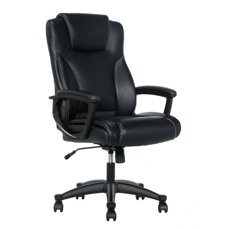 Experimente o máximo conforto, beleza e qualidade com a cadeira executiva Serta Black. Seu design sofisticado é combinado com um assento e encosto acolchoados para proporcionar o apoio necessário durante longas jornadas de trabalho. As bordas do assento aliviam a pressão nas pernas, reduzindo a fadiga. Além disso, conta com ajuste de altura pneumático, regulagem de tensão e trava de bloqueio para personalizar sua experiência. Com rodízios duplos, tenha a melhor mobilidade em qualquer ambiente.