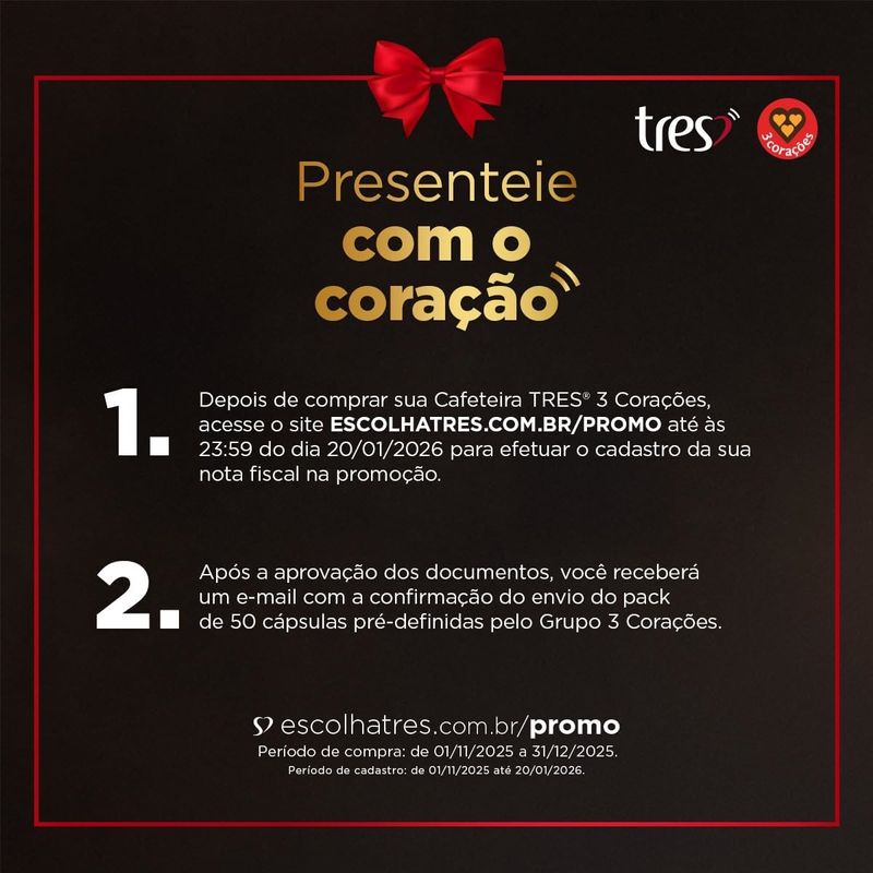 A Cafeteira de Espresso e Multibebidas Automática Passione TRES 3 Corações é ideal para os apaixonados por café que buscam praticidade ao simples toque de um botão. A PASSIONE é a máquina mais compacta da linha TRES. Silenciosa e compacta, ela possui um compartimento interno para até 4 cápsulas usadas. São 3 sistemas em uma única máquina! As cafeteiras 3 Corações tem garantia de 5 anos* e preparam cafés espressos, filtrados, cappuccinos, bebidas cremosas e chás com praticidade e perfeição! Escolha o que mais combina com você. Para cada estilo, uma máquina TRES. Passione, você vai se apaixonar! As Cápsulas e Máquinas do sistema TRES® são livres de BPA.