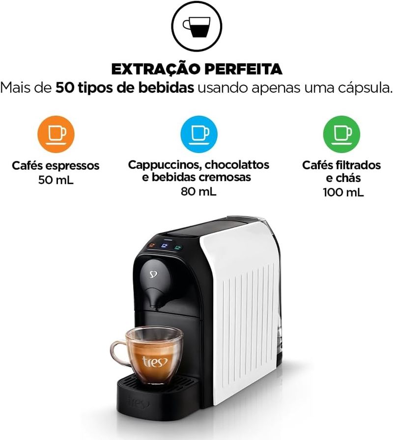 Cafeteira Espresso Automática Passione Branca 127V - TRES 3 Corações