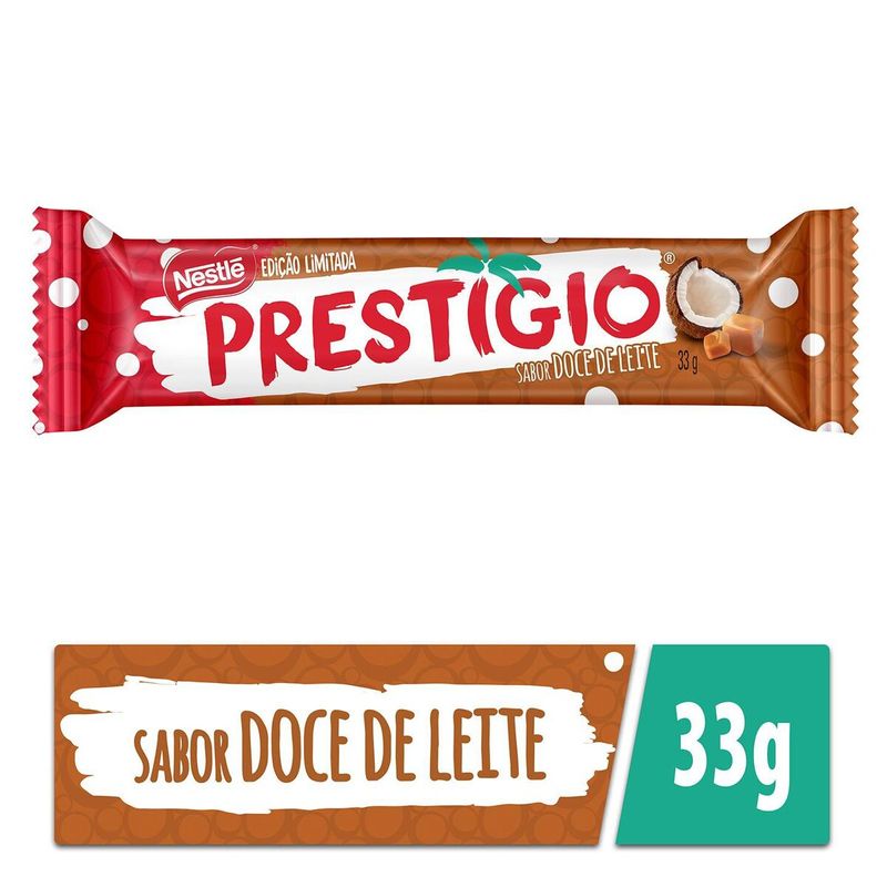A combinação perfeita de coco molhadinho e chocolate Nestlé®! No Brasil, Prestígio se tornou sinônimo de chocolate com coco e disponível agora, na edição limitada Prestígio Sabor Doce de Leite, com um dos sabores mais queridos pelos brasileiros. Conheça já!