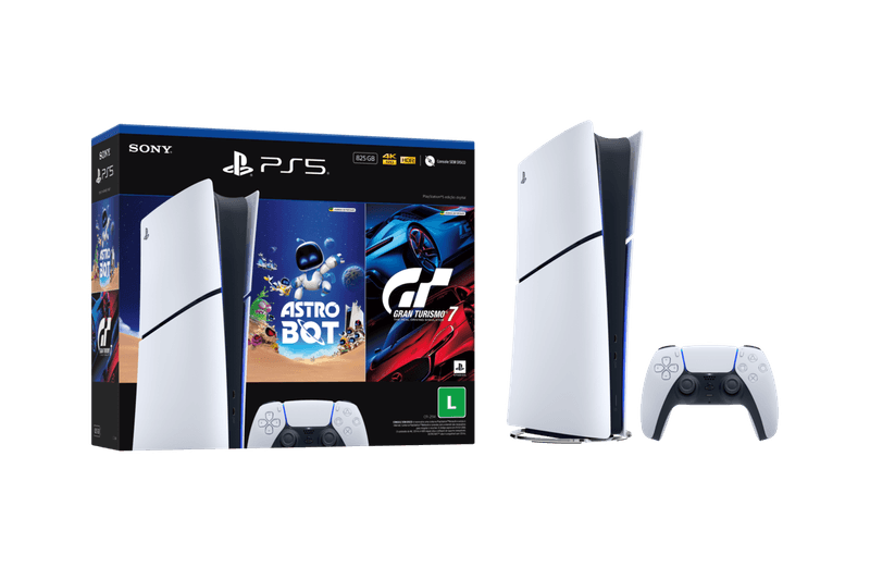 | Conteúdo da Embalagem | Voucher para o jogo completo do Gran Turismo 7* Voucher para o jogo completo do ASTRO BOT* Controle sem fio 1TB SSD 2 pés do suporte horizontal Cabo HDMI® cabo de alimentação CA Cabo USB, materiais impressos ASTRO’S PLAYROOM (jogo pré-instalado) *É necessário ter uma conta na PlayStation Store e conexão à Internet para resgatar o voucher. |