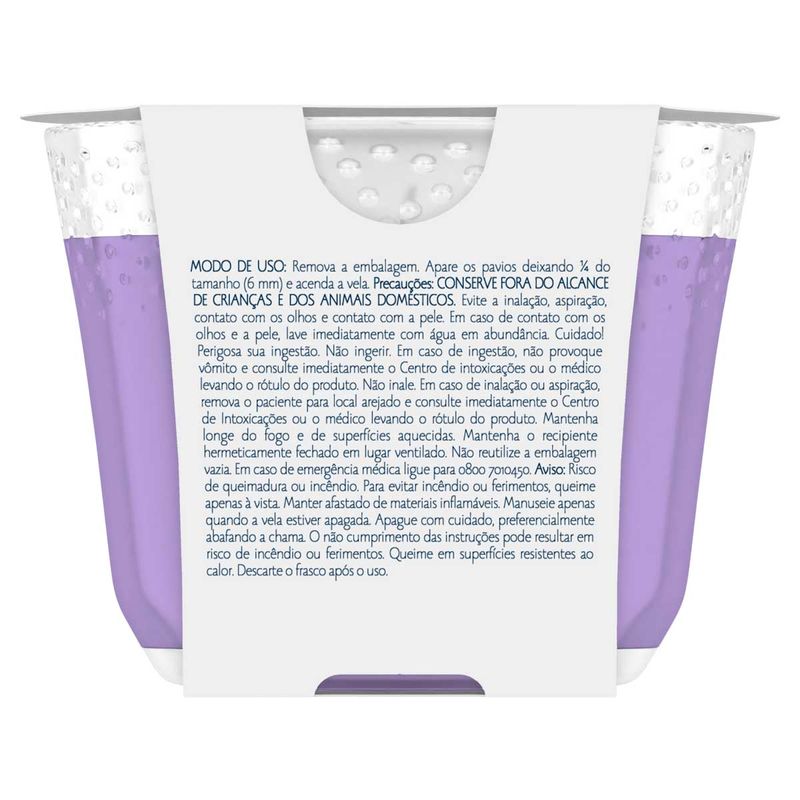 | Indicação de Uso | Produto desenvolvido para perfumar todos os ambientes da sua casa, deixando-os com um aroma agradável. Modo de Uso : Remova a embalagem. Apare o pavio deixando 1/4 do tamanho (6mm) e acenda a vela. Notas Olfativas: Uma lavanda moderna e convidativa combinada com notas de frutas cítricas frescas e sândalo reconfortante, criando um retiro caseiro para relaxar. |