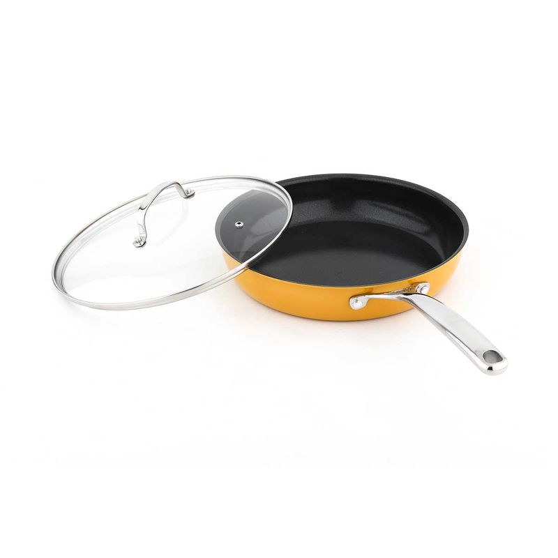| Características | "Fundo Triplo em aço inoxidável Revestimento Ceramico Antiaderente Tampa em vidro Temperado Antes do primeiro uso, é essencial realizar a cura para garantir maior durabilidade e desempenho. Esse processo cria uma camada protetora, evitando o desgaste precoce e promovendo uma distribuição de calor mais uniforme. Para fazer a cura, aplique um óleo com alto ponto de fumaça (como óleo de canola, girassol ou abacate) usando um papel toalha ou pano limpo. Aqueça em fogo médio-baixo por 5 a 10 minutos, desligue o fogo e deixe esfriar completamente. Para melhores resultados, repita o processo. Após a cura, guarde em local seco e evite empilhá-la sem proteção. " |