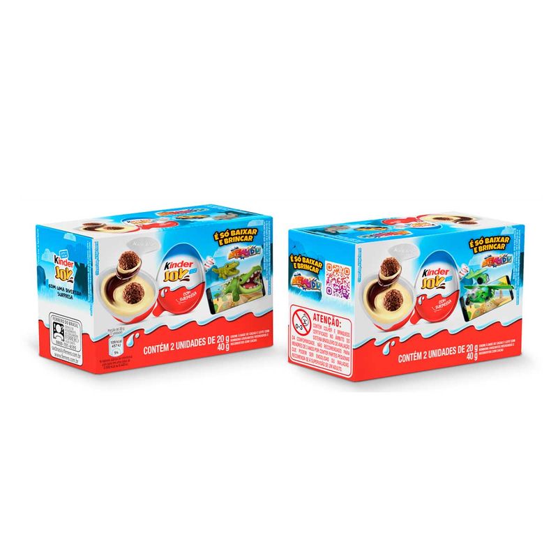 Kinder Joy Menino 2 Unidades de 40g. KINDER JOY LUI T2 - 40g. Acompanhar o crescimento das crianças ficou ainda mais saboroso e divertido com a companhia de Kinder Joy. Que delícia é crescer. Kinder Joy proporciona uma experiência única para ser saboreada a cada colherada. Uma incrível combinação em duas metades. De um lado tem um creme de cacau e leite com dois bombons crocantes. Do outro, uma surpresa incrível e divertida que se transforma no digital. A embalagem vem com uma prática colher que permite saborear o chocolate do seu Kinder Joy em qualquer lugar e a qualquer momento. Abriu, puxou, colherou, brincou com os amigos. Com experiência na produção dos mais saborosos chocolates, Kinder investe sempre em pesquisas e na busca pelos melhores ingredientes para entregar um padrão de qualidade aos mais exigentes paladares. Imagens meramente ilustrativas. Todas as informações divulgadas são de responsabilidade do Fabricante/Fornecedor.
