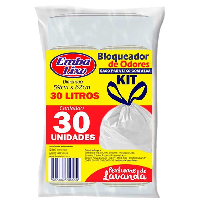 Kit Embalixo Saco para Lixo com Alças e Bloqueador de Odores Lavanda 30L 2x15 unidades