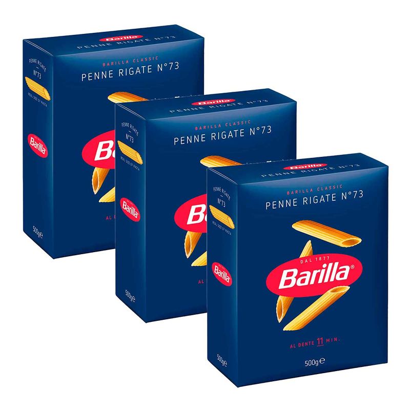 Macarrão de Sêmola Penne Rigate 73 Barilla Pack com 3 unidades 500g Cada
