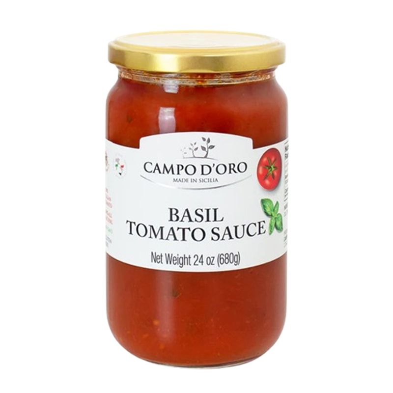 Molho Tomate Campo D Oro Basilico 680g. Molho de tomate fresco com manjericão, perfeito para quem busca um sabor leve e aromático. Ideal para massas, bruschettas e pratos que pedem um toque herbal e fresco.