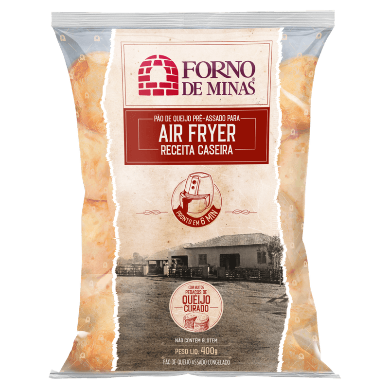 O pão de queijo para air fryer forno de minas 400g é uma versão do tradicional pão de queijo mineiro especialmente desenvolvida para o preparo rápido e prático em fritadeiras de ar (air fryer).