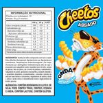 | Composição | Farinha de milho enriquecida com ferro e ácido fólico (bacillus thuringiensis, agrobacterium sp, agrobacterium tumefaciens, streptomyces viridochromogenes, zea mays, dicossoma sp e sphingobium herbicidovorans), óleo de soja e preparado para salgadinho sabor requeijão (soro de leite, xarope de glicose, óleo de palma, sal, cloreto de potássio, maltodextrina, realçadores de sabor: glutamato monossódico, inosinato dissódico e guanilato dissódico, aromatizantes, corantes: extrato de urucum base bixina e curcumina, reguladores de acidez: ácido l-lático e ácido cítrico e emulsificante mono e diglicerídeos de ácidos graxos). |