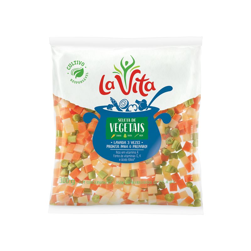 Seleta de Vegetais Lavados La Vita, uma combinação saudável para o seu dia a dia. Dentro da embalagem, você encontra um mix de chuchu, cenoura e vagem totalmente. É só abrir e começar a sua receita.