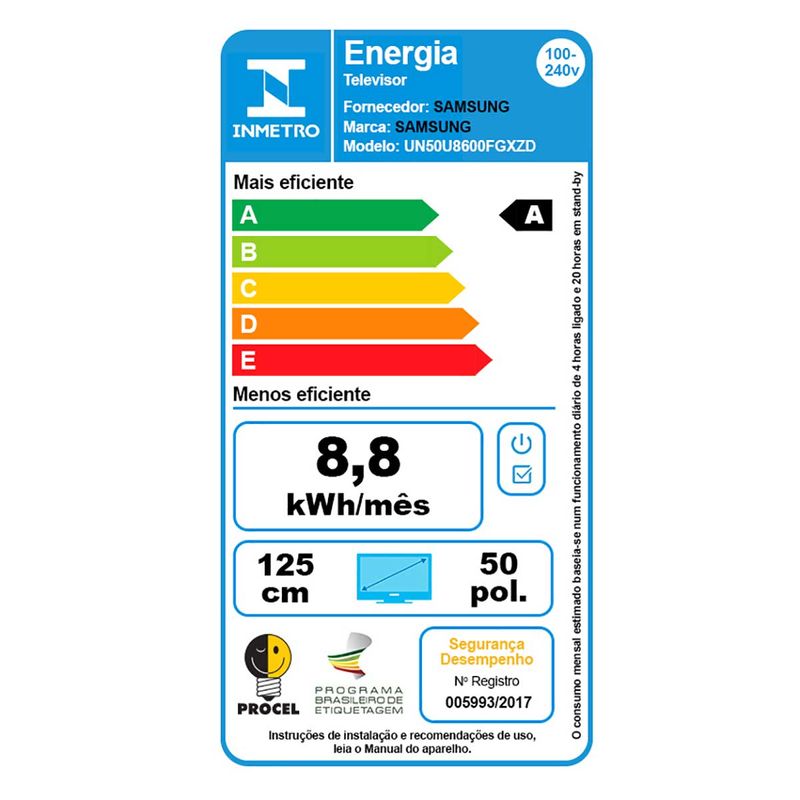 | Características | Peso: 95Kg / Voltagem: BIVOLT / Potência:20W/ UN50U8600FGXZD |