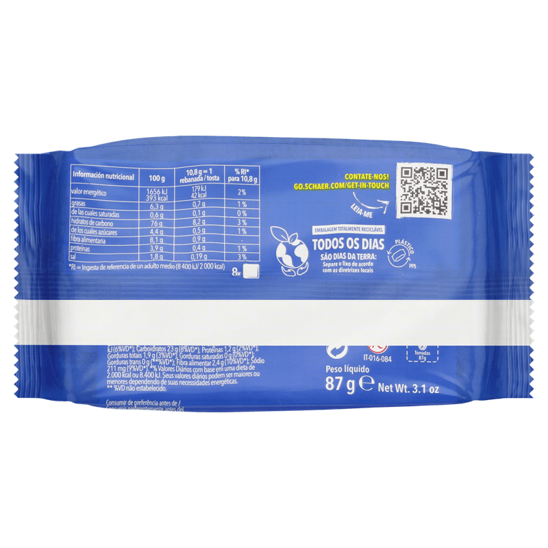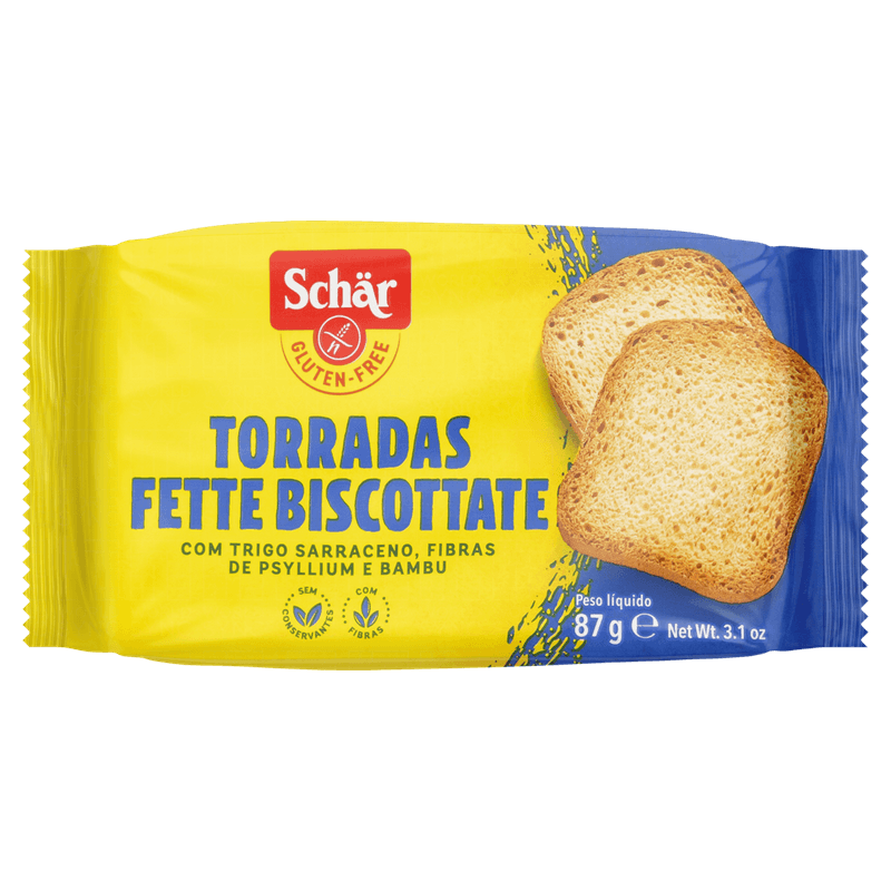 Torrada Tradicional com Trigo Sarraceno, Fibras de Psyllium e Bambu sem Glúten Schär Pacote 87g 8 Unidades